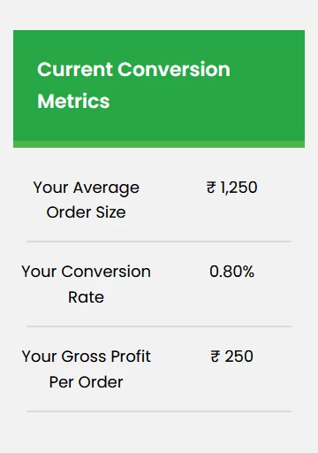 To give you increased visibility about your online business, we have come up with a calculator that can show your conversion rate . And more importantly, it shows that if you can improve any of the core variables, how much difference will it make to your overall profits in exact figures.