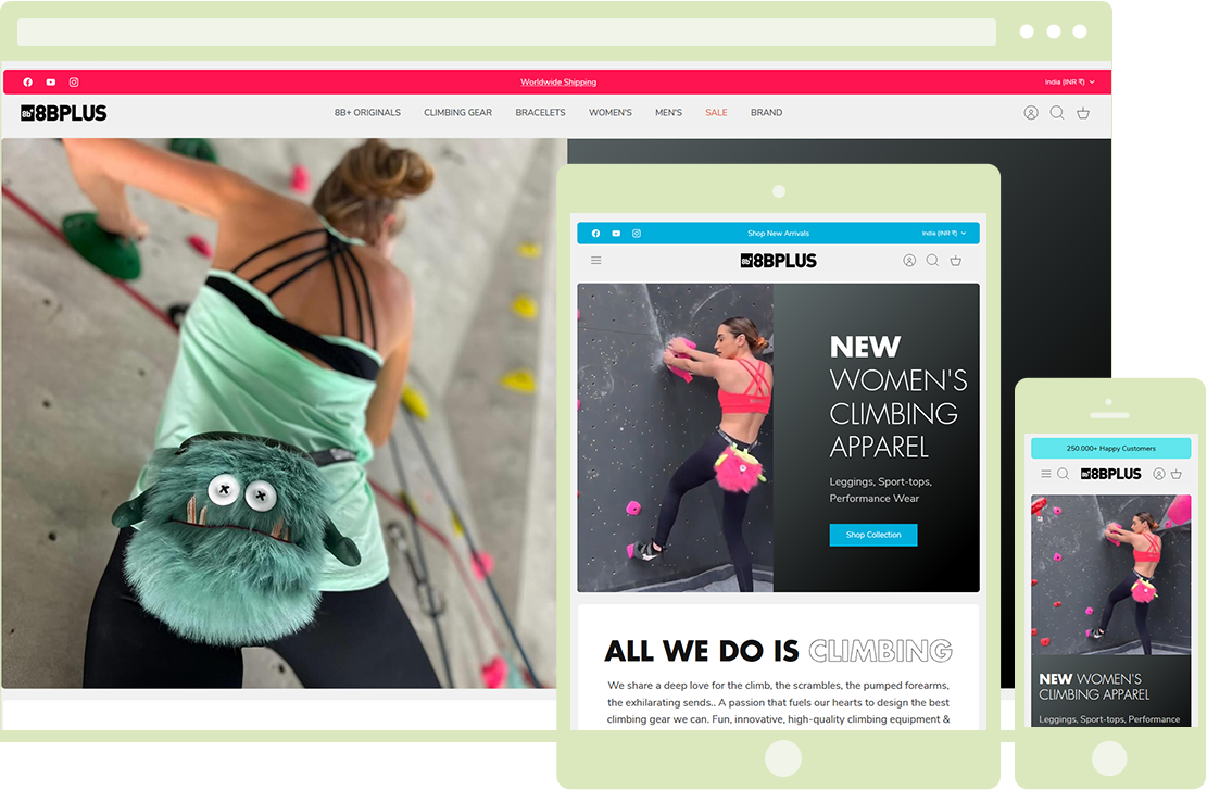 8BPlus is a U.S.-based e-commerce brand specializing in innovative sportswear and climbing accessories. Refresh Ideas delivered strategy, Shopify development, design, SEO optimization, and performance enhancements. The solution created a user-friendly, engaging platform that strengthens 8BPlus’s online presence, improves customer experience, and drives sales growth in the competitive sportswear and climbing gear market.