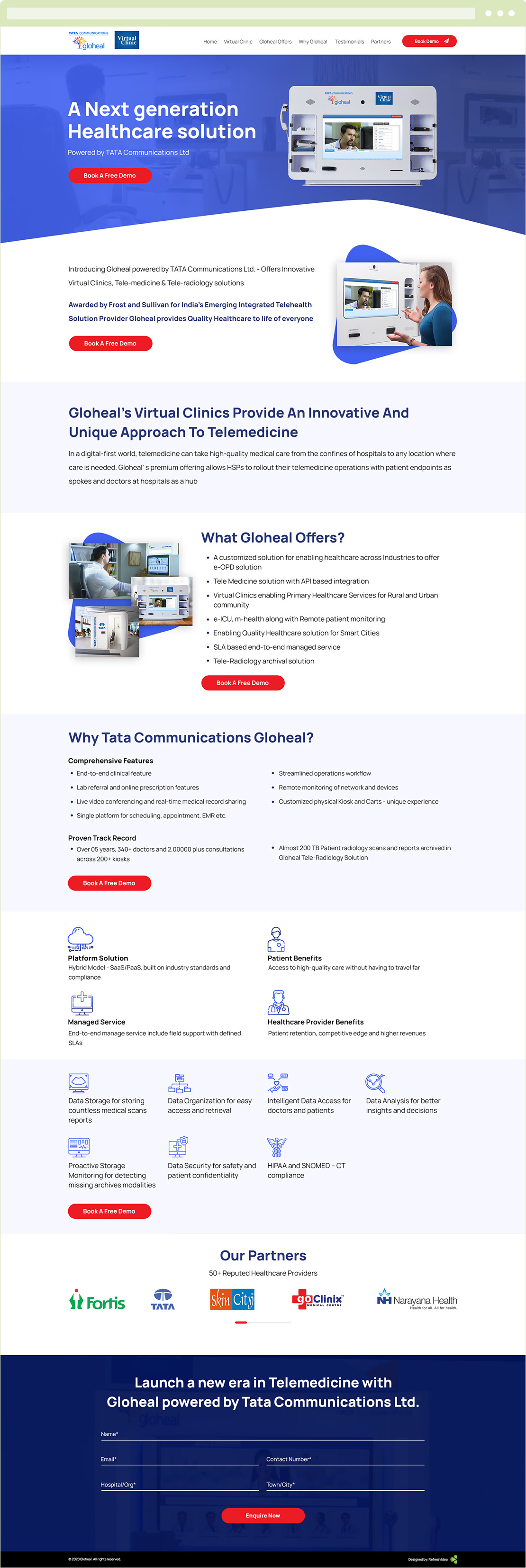 Gloheal, an innovative healthcare initiative by Tata Communications, is a virtual consultation platform that enables patients and doctors to connect seamlessly through Virtual Clinics. Refresh Ideas delivered UI/UX design, responsive web design, design thinking, and DotNetCore CMS development with strategic consulting. The solution enhances user experience, streamlines digital consultations, and strengthens Gloheal’s mission to make quality healthcare accessible across distances.