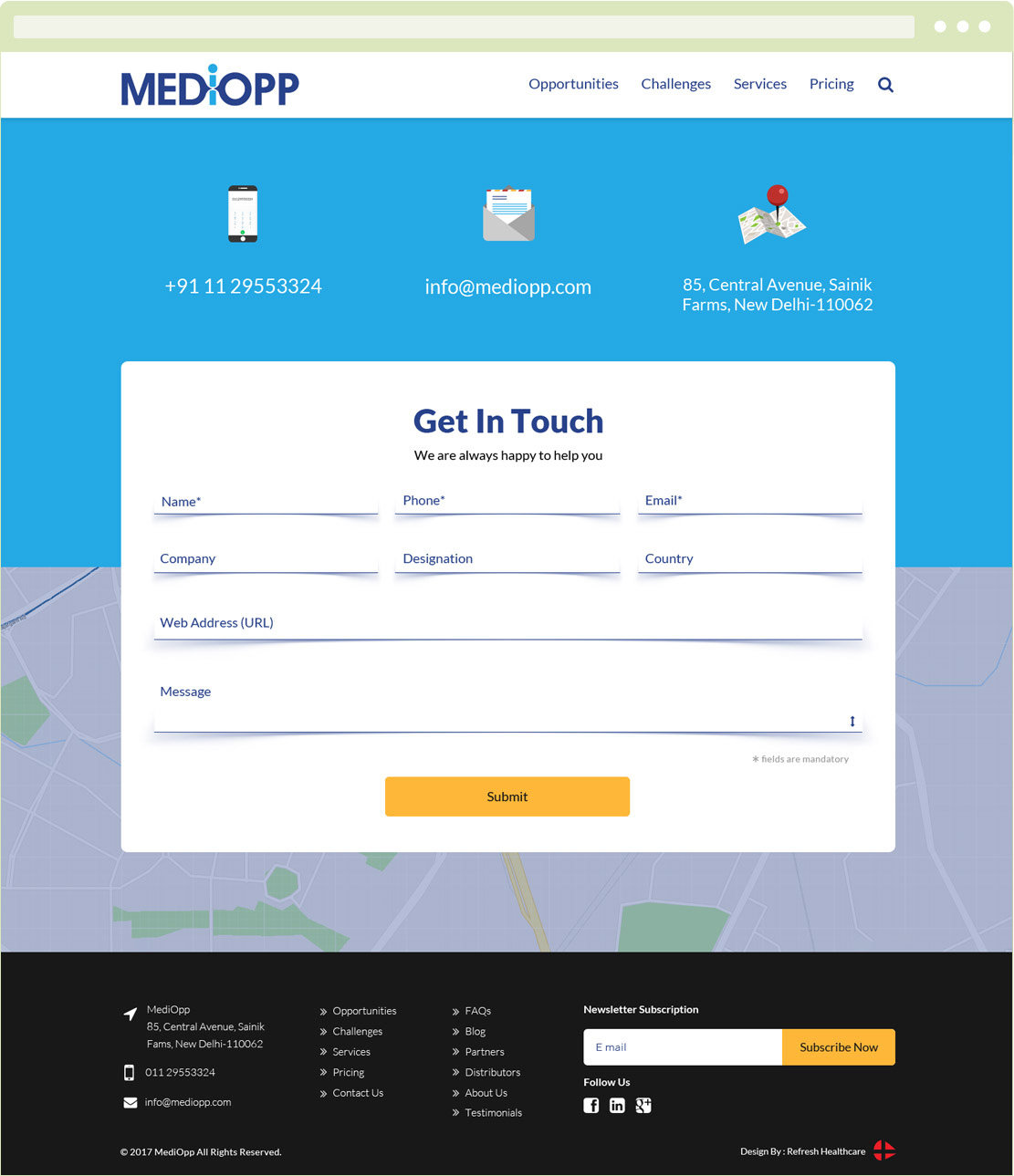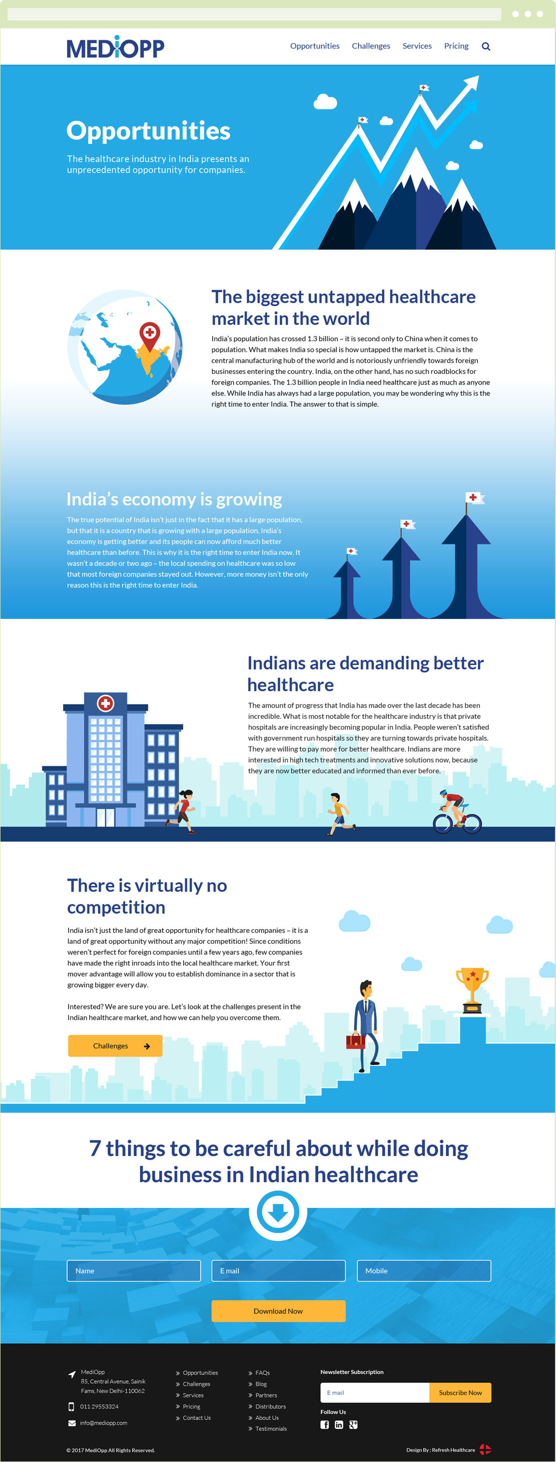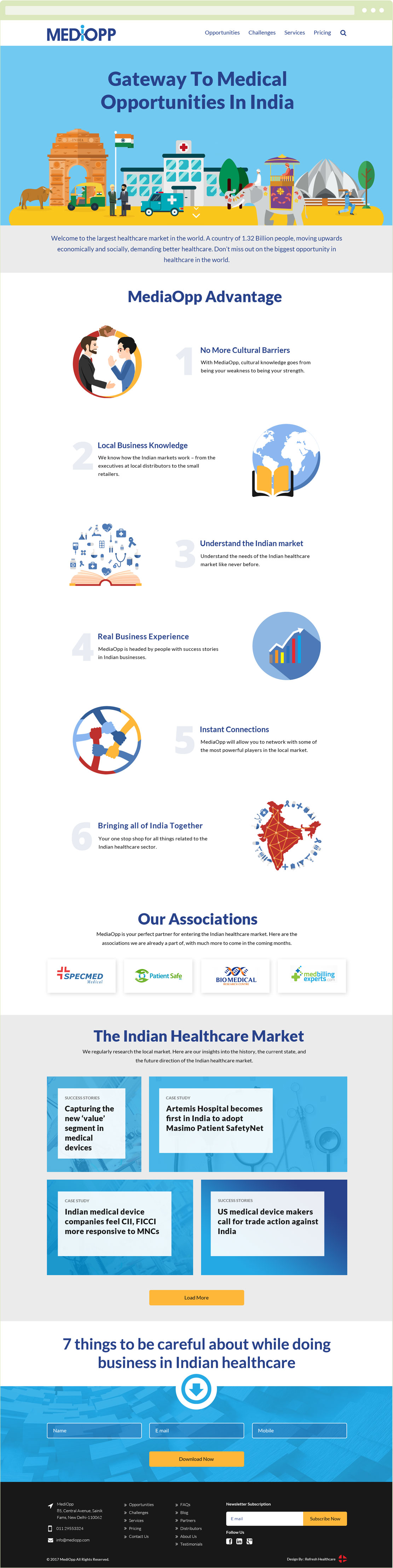 MediOpp connects medical opportunities in India. The company vision is to be a gateway to medical opportunities in India for all foreign sellers.