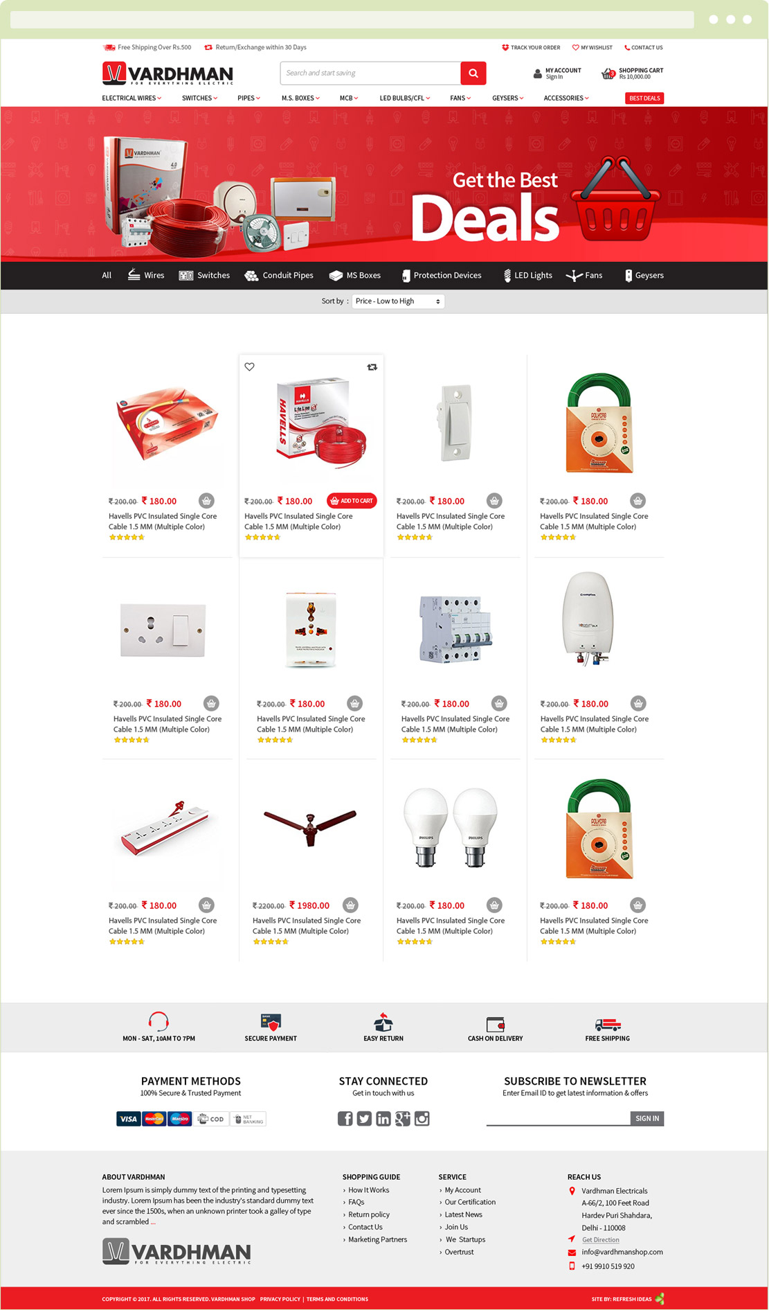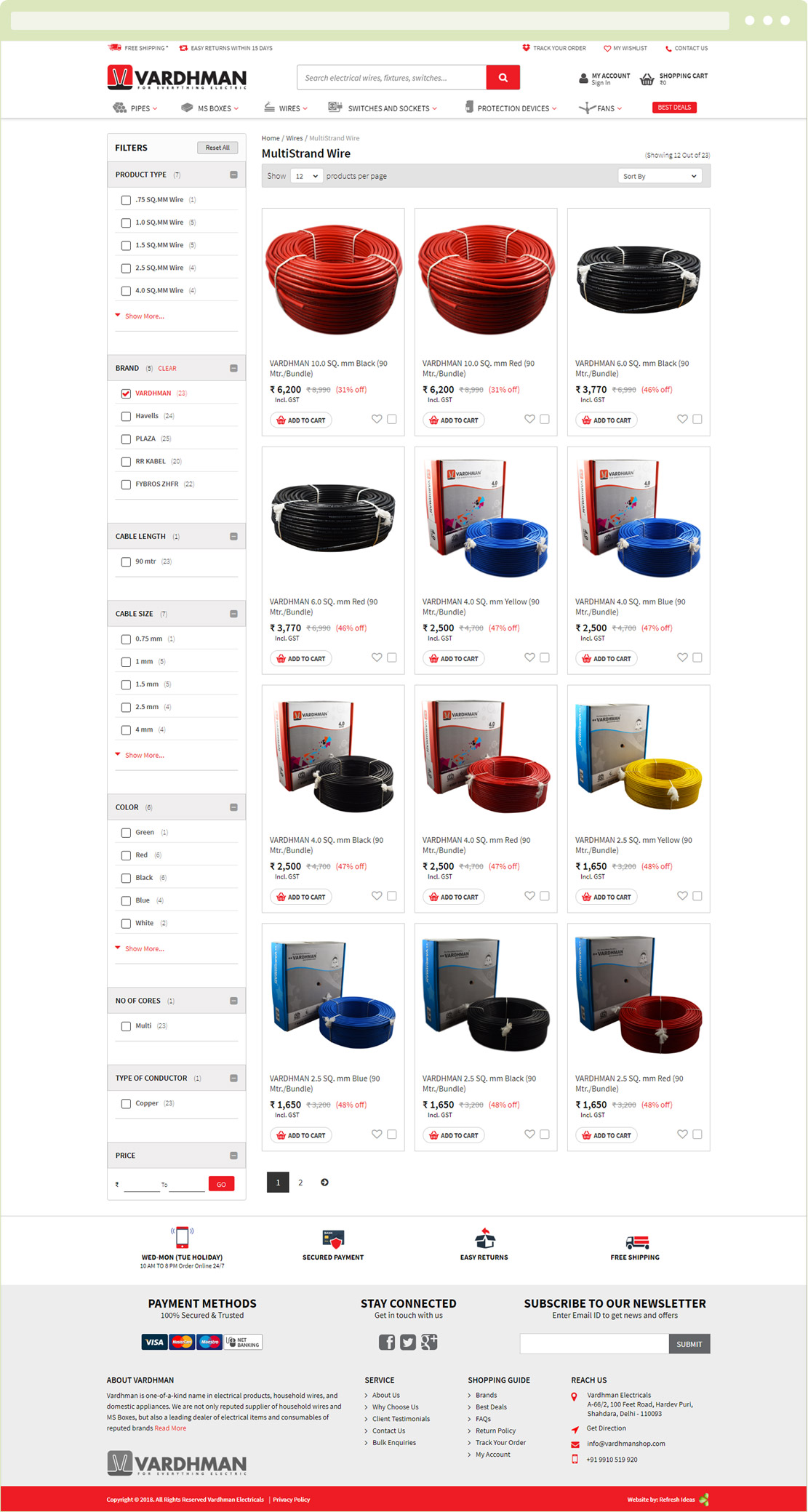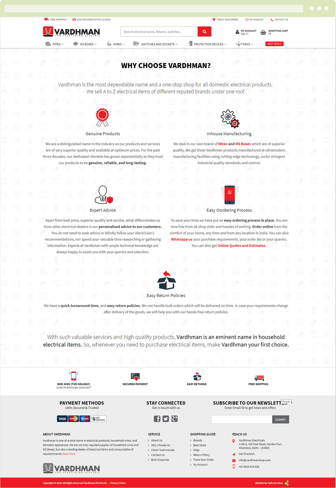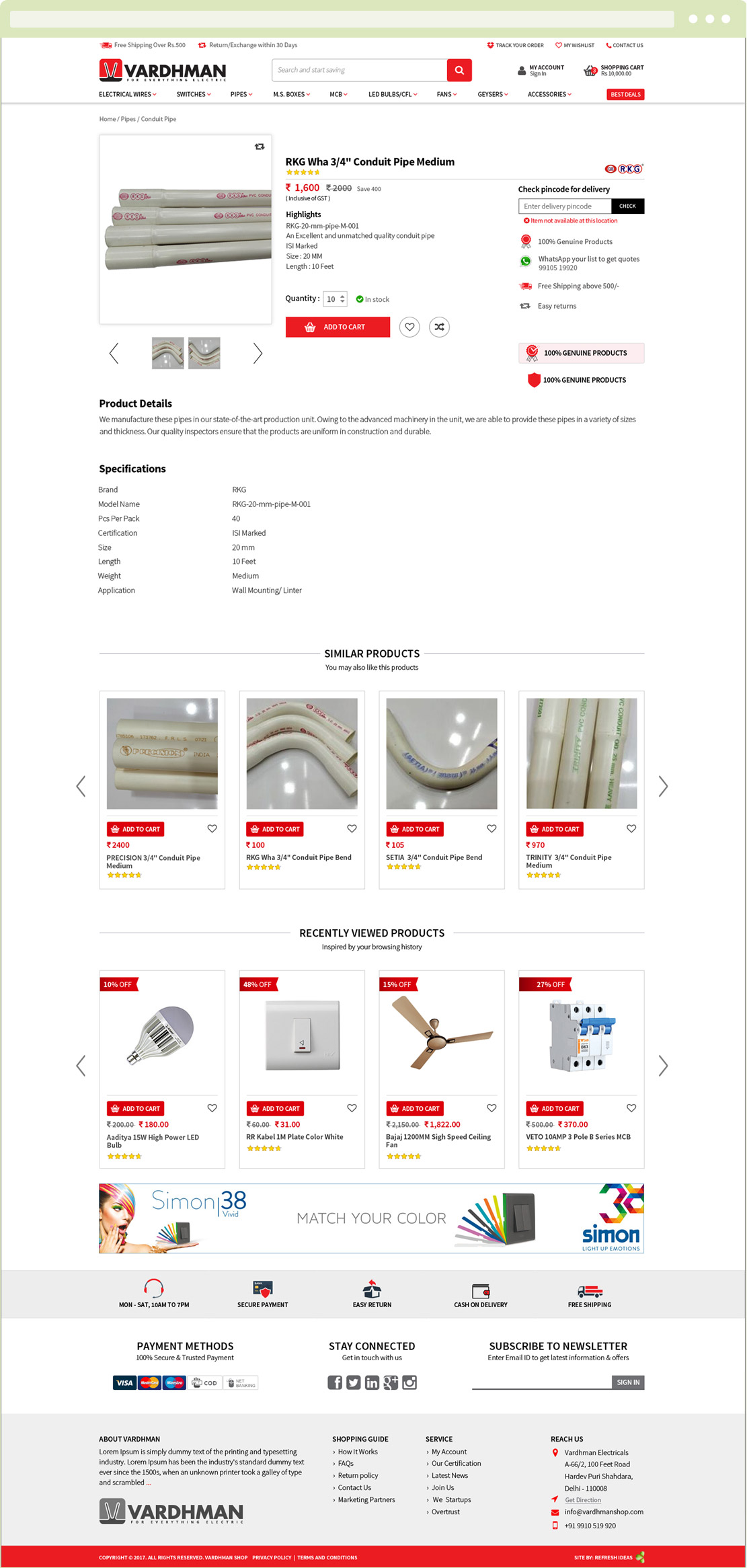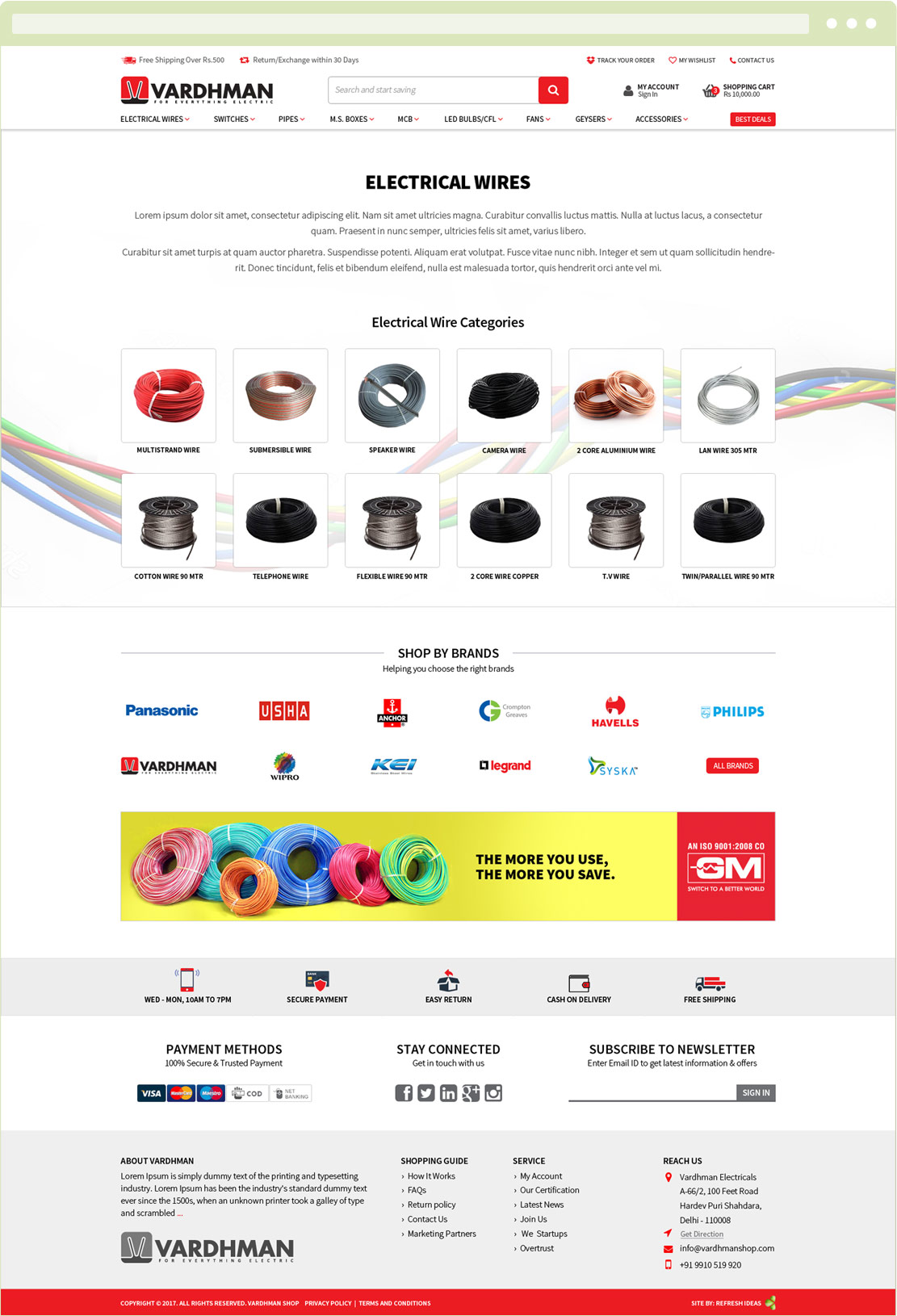 Enjoy peace of mind and personalized advice when you buy electrical items for your house construction from Vardhman Shop. Vardhman is a trusted name in trading of electrical products and we are also proud of our own brand of Wires and MS boxes.